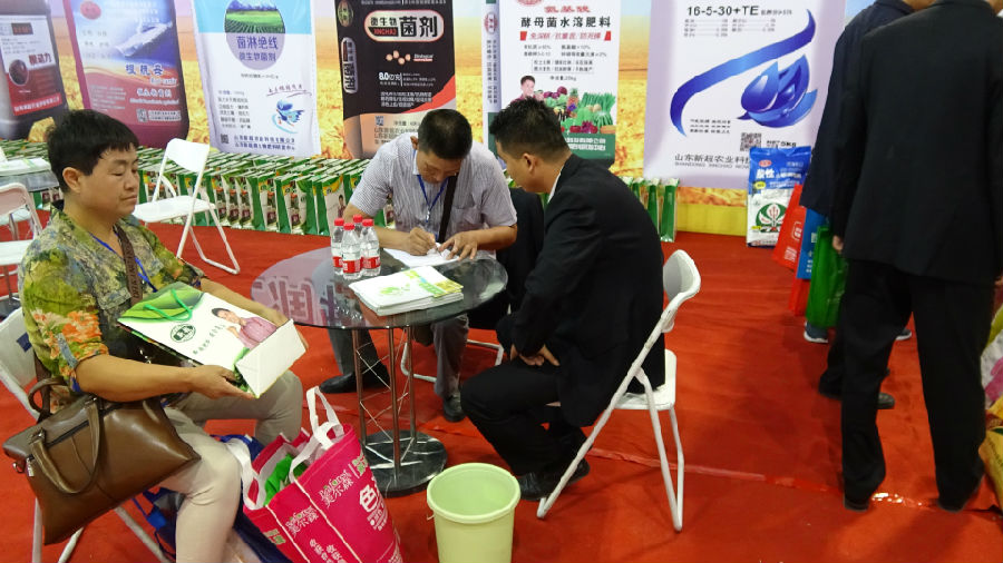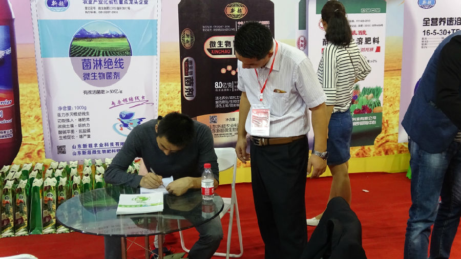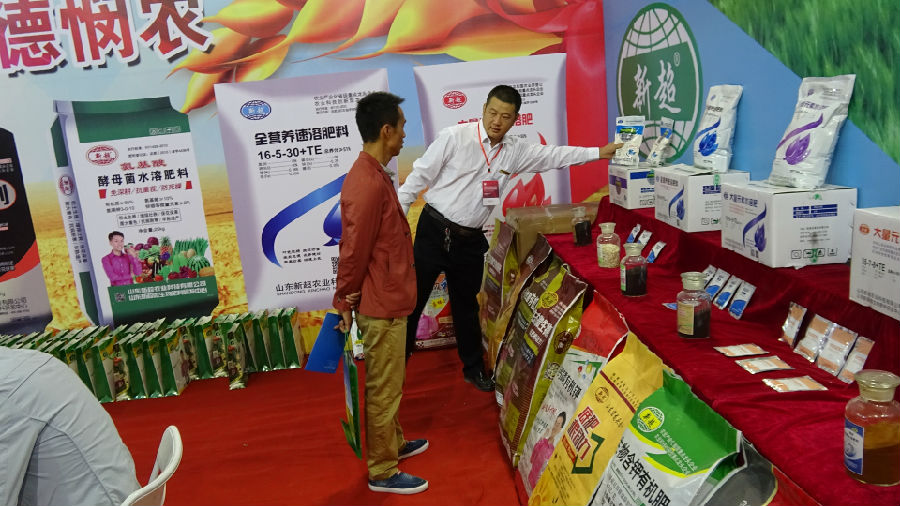 金秋的阳光温馨恬静,微风和煦飘柔,蓝天白云飘逸,田野遍地金黄,在这充满着收获的金秋季节,新超农业科技有限公司在2016年甘肃农博会上一展雄姿,迎来了八方客商,新超公司带来了精品系列肥料,带来了新的技术,新的智慧,给参展商注入了新的元素,参展客商高兴而来,满意而归。