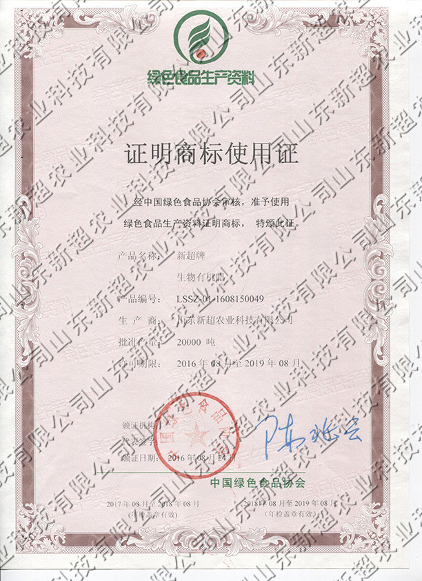 生物有机肥证明商标使用证 - 幸运飞艇168体彩开奖官网